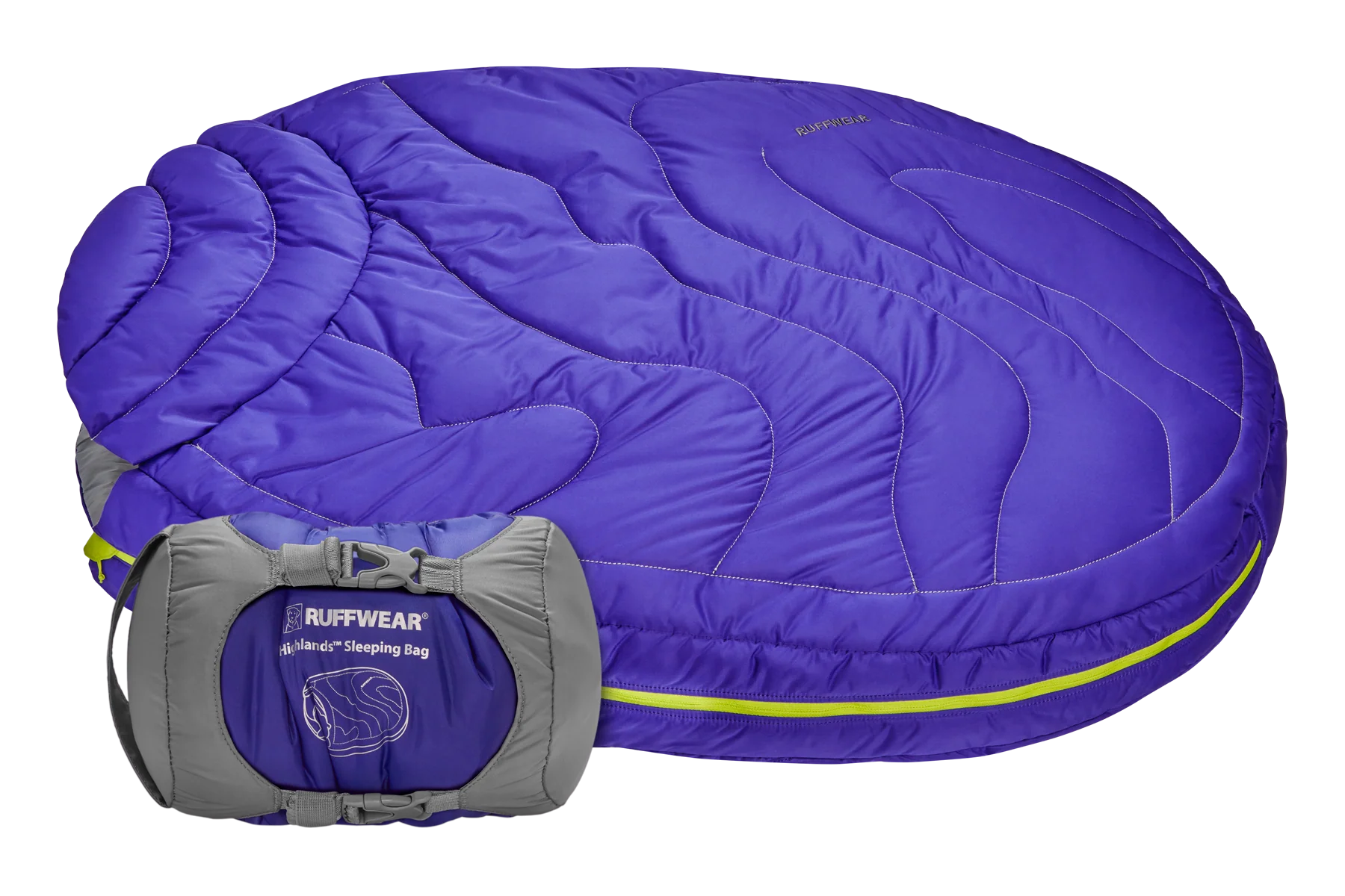 The Highlands Sleeping Bag is a lightweight, compressible synthetic down sleeping bag for dogs, keeping them warm and comfortable on the trail, at camp, and in the backcountry. The half-length zipper maintains easy entry while reducing weight and bulk. When zipped closed, the design is efficient at keeping dogs warm – giving dogs room where they need it while tailoring the shape to cut down on extra space.